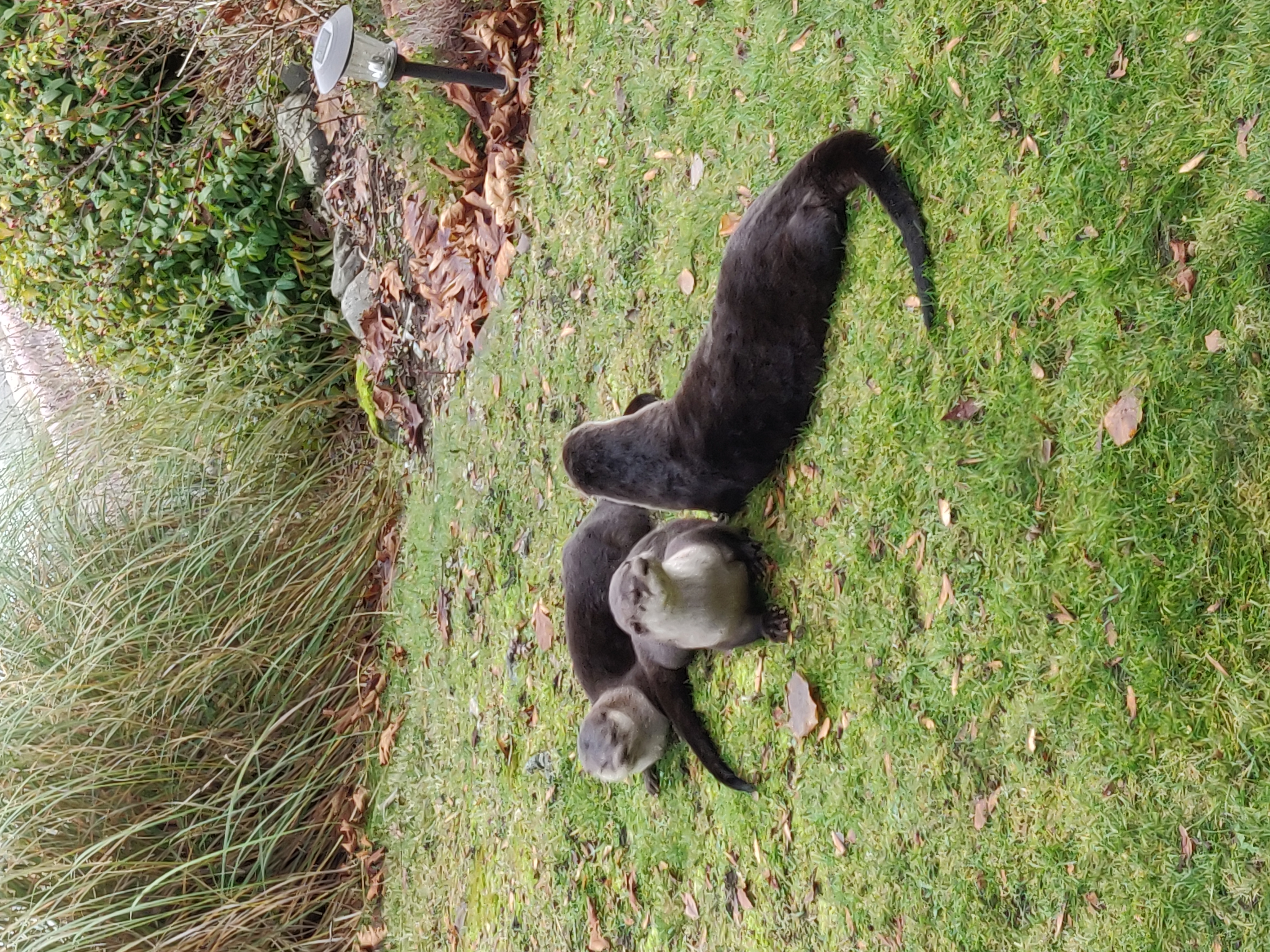 swim out to sea. These are 3 young otters playing on our lawn. Dawn is