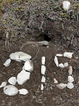 Rocks gathered to honour the 215 children found in a mass grave at Kamloops Residential School. Tobacco was offered for each child.
