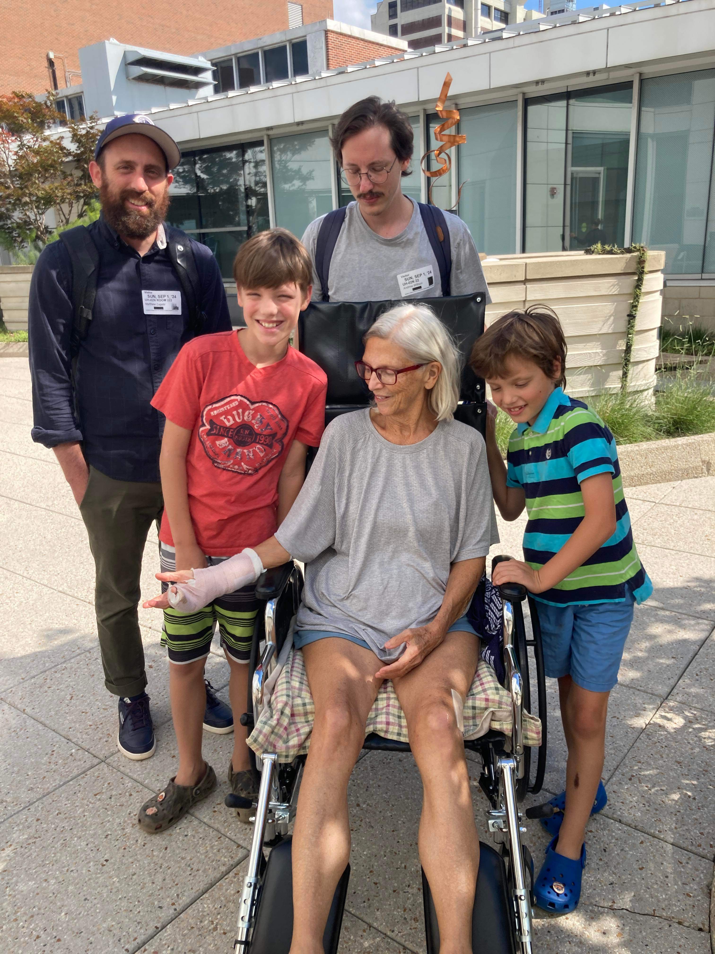 Dizzy and Fay and DALA. What a trooper! Here she is with a son pushing the