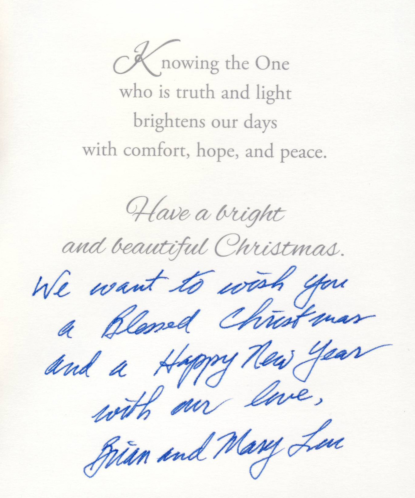 May peace, joy and all that your hearts wish be with you Brian and Mary Lou